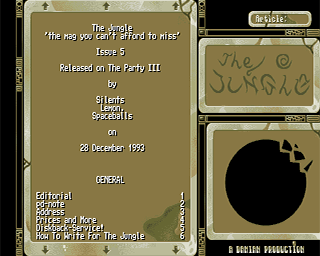 GENERAL ENTERTAINMENT (continued) --------------------------------------- --------------------------------------- 001 Editorial 050 In 20 years - Humans on Mars 002 pd-note 051 All That She Wants? 003 Address 052 Hard Working Days... 004 Prices and More 053 Problems in Russia 005 Diskback-Service! 054 Latest Console Infos - A Resume 006 How To Write For The Jungle 055 CD32 - Heaven Or Hell? 007 How To Write Addies For THE JUNGLE 056 3D0: Super System or Flop? 008 Official Spreaders Wanted 057 Latest Consoles Info II 009 Official Spreaders List 058 Latest Consoles Infos III 010 HD-Install 059 Latest Consoles Info IV 011 HELP 060 Music Packers - The Test 061 Painting On A Street SCENE 062 Quality Disks - A Joke? --------------------------------------- 063 The International Course 012 The Case Of W.O.T.W. 064 The Mags Are All Faked! 013 The Scene CD? 065 The Scene: 530 KHZ! 014 RAW Suxx!? - Yes It Does! 066 How To Get Motivation 015 The Party Insurance 067 Welcome To VIVA 016 Are The Demos Painted? 068 When Words Are Not Enough... 017 Articles - Quality Vs. Quantity 018 Austrian Modem Scene Report STORIES 019 A Beast Of A MainEditor... --------------------------------------- 020 A Swapping Lesson 069 The Dorg - Chapter 5 021 Objectivity Is None! 070 The Heroin - Chapter 2 022 Diskmags Are Mighty 023 Earn Money With Your Scene Work! NEWS 024 Fuck AGA!? --------------------------------------- 025 Laxity - The Shame On You! 071 News Info 026 Module Corruption 072 The News 027 The Future Of ASCII Unlimited 028 A500 - A Sinking Ship? PARTYLINE 029 Open Letter To RAM JAM --------------------------------------- 030 The Unknown Scene 073 Do You Remember THE PARTY 1992? 031 Release Dates - A Big Fake? 074 Radwar VII - Invitation 032 The Story Of The Lost Trackmos 033 Swappers: We Are Important! ADVERTS 034 No Visitors - No Success? --------------------------------------- 035 Are Melon Lamers? 075 Adverts 1 036 The Ultimate Party Guide 076 Adverts 2 037 This Is An Effect!? 038 Too Many Charts Spoil The Scene OUR LITTLE KITCHEN 039 You Are Crap, You Group Is Crap! --------------------------------------- 040 Your Name Is Your Vote 077 Little Kitchen Introduction 041 Chip Tunes - A Desease? 078 Something to Eat 079 Something To Drink INTERVIEWS 080 OLK-Special: CAKES! --------------------------------------- 081 How To Make Berliner Doughnuts 042 Christine d.l. Queen 082 How To Make A Mazarin Cake 043 Cougar of Sanity 044 The Charts Staff CHARTS --------------------------------------- REVIEWS 083 List Of Voters --------------------------------------- 084 TOP 18 Coders 045 BOGGLEDOP / SANITY - A Review 085 TOP 18 Demos 046 Review Of Bruce Lee!? 086 TOP 18 Games 087 TOP 18 Gfx Artists ENTERTAINMENT 088 TOP 18 Groups --------------------------------------- 089 Top 18 Musicans 047 -TRO Unlimited 090 TOP 18 Trackmos 048 Flying Saucers - A Fact! 091 Vote-Sheet 049 Alien Is Watching You