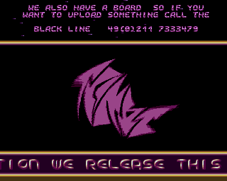 WE ARE STIL LOOKING CHAOS FOR SOME MEMBERS, DIERK OHLERICH IF YOU WANT TO JOIN THUNER STR. 181 SANITY AS CODER, GFX 2160 STADE, FRG OR MUSICIAN CONTACT US AT THIS ADRESS: 49 (0)4141 69509