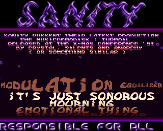 SANITY IS BACK ON THE STAGE!! WE FINALLY MANAGED TO BUILD OUR DREAMGROUP: SANITY AS A FIRST PRODUCTION WE RELEASE THIS MUSICDISK! WAIT FOR OUR NEXT REAL DEMO!